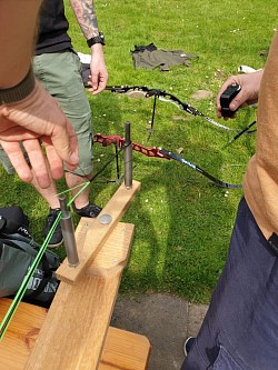Nach der Theorie geht es in die Praxis. Hier wird die Auszugslänge so wie das Zuggewicht ermittelt. Außerdem können neue Sehnen und Pfeile gebaut werden.